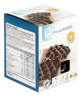 Suikervrije wafels bedekt met pure chocolade, met zoetstof
