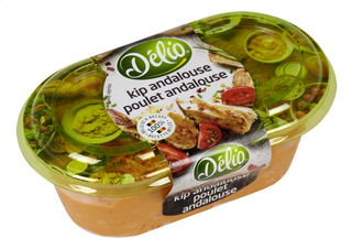 Ingrediënten: kip (45%) [kip, water, zetmeel, zout, aroma, glucosestroop, specerijen, kippeneiwit, conserveermiddel (E262), antioxidant (E331)]; koolzaadolie; water; wortel; pickles [water, bloemkool, azijn, MOSTERD, augurk, gemodificeerd zetmeel, ui, zout, kruiden, specerijen (bevat: SELDERIJ), kleurstof (caroteen)]; ui; tomaat; suiker; EIgeel; zout; gemodificeerd zetmeel; kruiden; specerijen; chili-extract; MOSTERD; gistextract; azijn; stabilisatoren (guarpitmeel, xanthaangom); voedingszuur (melkzuur); zuurteregelaars (E262, E325); kleurstoffen (paprika-extract, rode biet extract); conserveermiddel (E202)