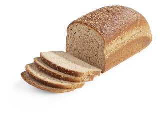 Ingrediënten: VolkorenTARWEmeel, water, gist, zout, TARWEgluten, TARWEbloem, weipoeder (bevat MELK), dextrose, TARWEmoutmeel, emulgatoren (E472e, E481), plantaardige oliën (koolzaad, raapzaad), TARWEzuurdesempoeder, meelverbeteraar (E300), antioxidant (E300), aroma. Decoratie: HAVERzemelen. Sporen: gluten (rogge,gerst), eieren, soja, noten (amandel-, hazel-, wal-, pecan- en pistachenoten), selderij, mustard, sulfieten,sesam en lupine.