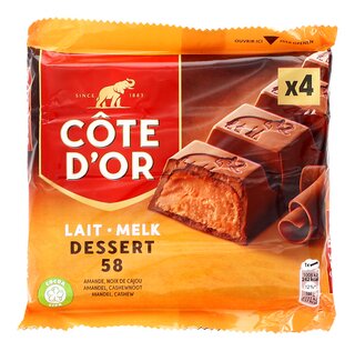 Ingrediënten: Suiker, cacaomassa, AMANDELEN (9,5%), magere MELKPOEDER, cacaoboter, CASHEWNOTEN (7,5%), plantaardige vetten (palmpit, palm), weipoeder (van MELK), MELKVET, emulgator (SOJALECITHINE), aroma's. KAN TARWE EN ANDERE NOTEN BEVATTEN.