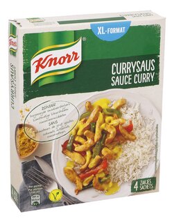 Ingrediënten: TARWEBLOEM, palmvet, kerrie 7,1% (koriander, komijn, kurkuma, peper, anijszaad, kaneel, venkelzaad, gember, lavaswortel, cayennepeper, piment), zout, zetmeel, aroma, appelpulppoeder, glucosestroop, gehydrolyseerd maïseiwit, suiker, kurkuma, maltodextrine, MELKEIWITTEN, mineraalzout (kalium), sojasauspoeder (sojasaus (SOJABOON, TARWE), zout, maltodextrine), uienpoeder, citroensap, karamelstroop, knoflookpoeder, peper, gistextract, peterseliewortelpoeder. Kan ROGGE, GERST, HAVER, EI, SELDERIJ en MOSTERD bevatten.