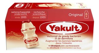 Water, magere MELK, glucose-fructosesiroop, suiker, maltodextrine, aroma's en de Lactobacillus casei Shirota.