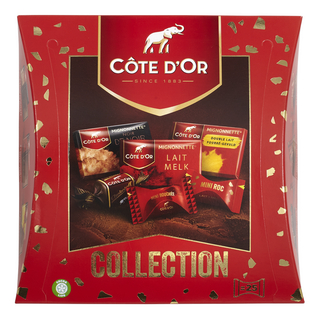Ingrediënten: Suiker, cacaomassa, cacaoboter, glucosestroop, magere MELKPOEDER, plantaardige vetten (palm, palmpit, shea), MELKVET, weipoeder (van MELK), HAZELNOTEN, HAZELNOOTPASTA, magere cacaopoeder, AMANDELPASTA, emulgatoren (SOJALECITHINEN, E476, E471), maïs, volle MELKPOEDER, lactose (van MELK), AMANDELEN, CASHEWNOTEN, zout, aroma's, zuurteregelaar (natriumcitraten).Cacao: ten minste 33 % in de melkchocolade.Cacao: ten minste 54 % in de chocolade.Kan andere noten en tarwe bevatten.
