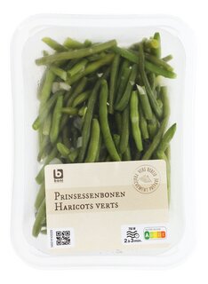 Ingrediënten: 80 % prinsessenbonen, 16,8 % uien, zonnebloemolie, zout, zuurteregelaar [E500(ii)], peper. Kan sporen van gluten (tarwe), schaaldieren, eieren, vis, soja, melk, selderij, mosterd, sesam en weekdieren bevatten.