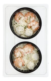 Ingrediënten: witloof 22%, ROOM, GARNALEN 16%, Sint-Jakobsvruchten (WEEKDIER) 13%, water, harde kaas (MELK, zout, stremsel, conserveermiddel: E1105 (bevat EI)), pancetta 3% (varkensspek, zout, dextrose, natuurlijke smaakversterkers, kruiden, antioxidant: E301, conserveermiddelen: E250, E252), visfond (VISbouillon, dextrose, koolzaadolie, maltodextrine, zout, maïszetmeel, peper, laurier, tijm, emulgator: E322), witte wijn 2%, gemodificeerd zetmeel, sjalot, zout, sherry, Noilly prat, citroensap, kruiden en specerijen, stabilisators: E406, E407, conserveermiddel: E224, bevochtingsmiddelen: E330, E331. Kan sporen bevatten van gluten, soja, sesam, selderij en mosterd.