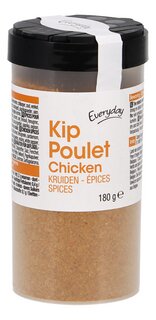 Ingrediënten: Zout, curry [koriander, kurkuma, MOSTERD, komijn, kikkererwten, chilipeper, zout, venkel, fenegriek, kardemom, knoflook (bevat van nature SULFIETEN), zwarte peper, kruidnagel], paprikapoeder, uien, witte peper, chilipeper, smaakversterker (E621), lactose (MELK), dextrose, gevogelte-aroma.