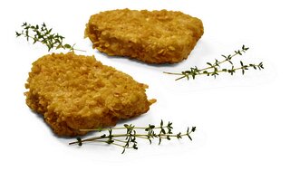Gepaneerd kippenvlees, samengesteld uit stukjes vlees, met toegevoegd water