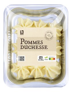 Ingrediënten: 94,3% aardappelen, 2,8% boter (MELK), eigeel [Elgeel, voedingszuur (E330), conserveermiddel (E202), water], zout, conserveermiddel (E202), nootmuskaat, stabilisator (E415), peper.