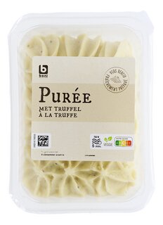 Ingrediënten: 80,6% aardappelen, MELK, 4,2% boter (MELK), water, 0,8% truffelpasta [champignons, zonnebloemolie, truffel, zout, aroma, zuurteregelaar (E330), peper], zout, conserveermiddel (E202), nootmuskaat, peper.