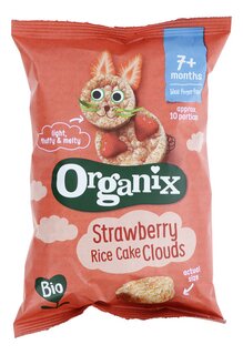Biologische ingrediënten: rijst 85,0%, appelsapconcentraat 12,0%, aardbeiensapconcentraat 2,5%, zwarte bessensapconcentraat 0,5%, thiamine (vitamine B1)* <0,1%. *Thiamine heeft geen biologische certificering. Glutenvrij.